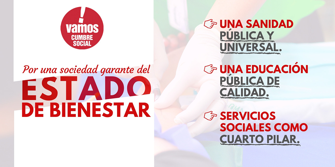 La Cumbre Social Estatal considera que la recuperación de un Estado de Bienestar socialmente justo e igualitario, con unos derechos sociales básicos garantizados y protegidos por los poderes públicos no puede esperar. Por ello, llama a la ciudadanía a participar en las próximas citas electorales, optando por aquellas candidaturas que apuesten claramente por: