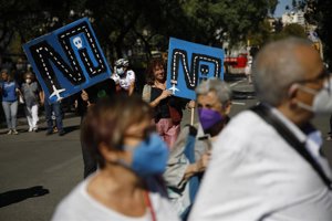 Los manifestantes llevan pancartas con los mensajes ‘Més carbassons i menys avions’ (Más calabacines y menos aviones), ‘El territori diu prou’ (El territorio dice basta) y ‘Sí a La Ricarda’, entre otras, y representantes de entidades hacen parlamentos desde un escenario ubicado a un lateral de la concentración.